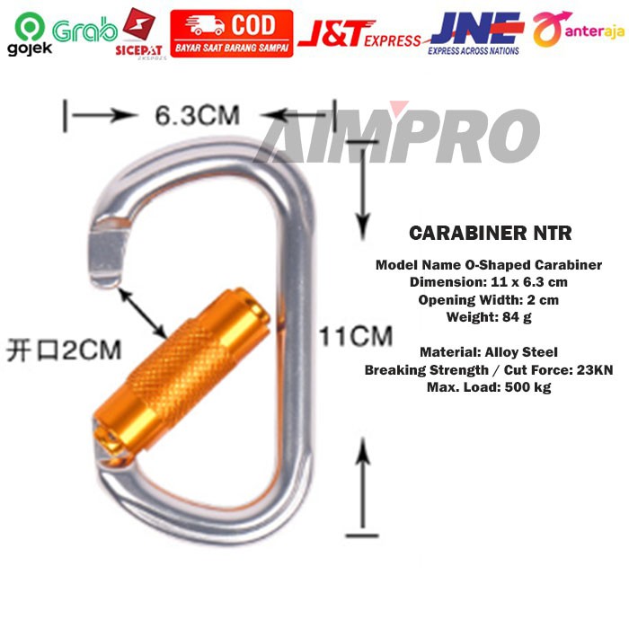 Merk : NTRMaterial Alloy SteelDimensi : 11 X 6.3 Cmopening Width: 2 CmCut Force: 23 kNmax Load: 500kgStandard: CE 0082 / EN 362:2004Made In ChinaORDER HARI INI DIKIRIM HARI INI!RESPON CEPAT. HARGA BERSAING. KUALITAS TERJAMIN. 100% PRODUK ORIGINALPesan sebelumpukul 12.00 WIBAgar pesananmu dikirim hari ini* pengiriman setiap SENIN - SABTU ( MINGGU dan tanggal merah tidak ada pengiriman )* WAJIB VIDEO FULL TANPA TERPOTONG saat membuka paket untuk klaim barang kurang/rusak* REKAM VIDEO YANG JELAS MULAI SEBELUM DARI MEMBUKA PAKET SAMPAI SELESAI PEMBUKAAN PAKET* baca deskripsi produk sebelum membeli yaaselamat berbela