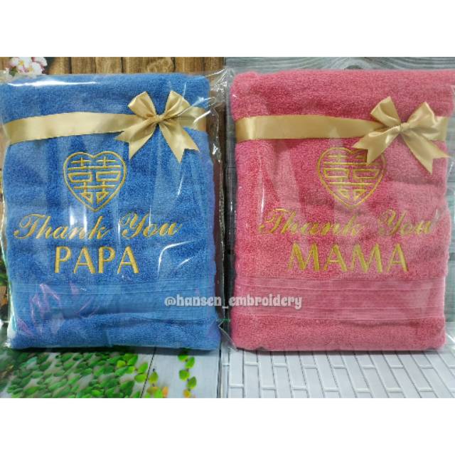 Handuk XUANGXI THANK U ✨Ukuran handuk mandiTersedia dalam 3 ukuran :50x100 = handuk mandi anak % cotton carded60x120 = handuk mandi sedang % cotton carded70X135 = handuk mandi dewasa CVC = 90% cotton, 10% polyesterSerap air dan tidak lunturKetebalan sedangHasil bordir rapih dan berkualitas..Tersedia berbagai pilihan ukuran dan warna hand