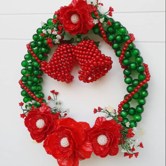 Hand made (buatan tangan), kuat, kokoh.Terbuat dari manik-manik berkualitas yang gak gampang lepas.Ukuran S diameter 25cm; lonceng 1, bunga 3Ukuran L diameter 30cm; lonceng 2, bunga 4Bisa custom beberapa warna lain (gak semua warna ya), chat aja dulu untuk pilihan warna lainnya.Untuk pembelian dalam jumlah banyak jg harap chat