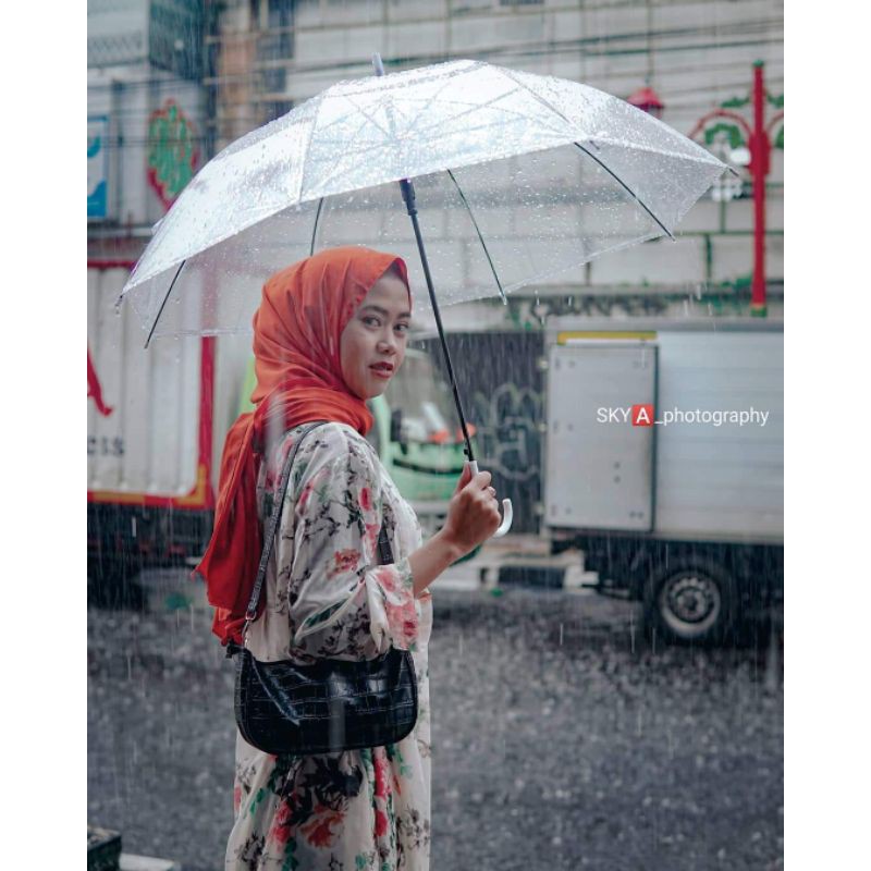 Payung transparent ini memiliki 8 rangka yang kuat, membuat payung ini tidak mudah rusak ketika menahan hujan yang disertai oleh angin yang kencang.diameter : 75CMpanjang :