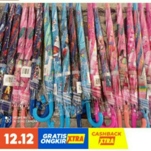 Payung anak karakter full printin- Karakter cowok cewek- Bahan PVC, 8 jari dengan bahan kuat- Ada sempritan/ peluit pada gagang buat anak tambah suka- Panjang mulai gagang sampai ujung 65 cm- Diameter saat dibuka 85 cm- 1 kg isi 5 payung - motif full printing dan hologram- stok sesuai di variasi- Pilih karakternya di var